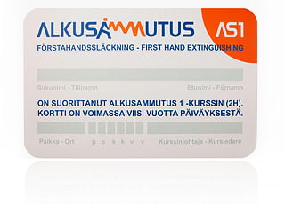 Todistuksena suoritetusta alkusammutuskoulutuksesta osallistujat saavat alkusammutuskortin, joka on voimassa viisi (5) vuotta. Kurssinjohtaja tallentaa tiedot jälkikäteen SPEK:n alkusammutusrekisteriin. Tarvittaessa kouluttaja tekee työnantajalle pöytäkirjan koulutuksesta ja osallistujista.